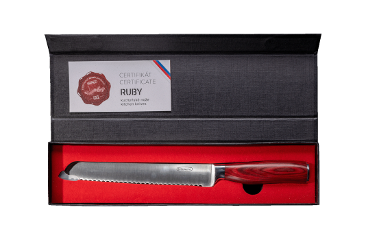 Kvalitní čepel s logem Mikov je vyrobena z martenzitické korozivzdorné oceli DIN 1,4116 o tvrdosti 55 HRC a je zasazena do dřevěné rukojeti. Rukojeť je dokonale ergonomická a umožňuje komfortní práci s nožem. Díky preciznímu zpracování je rukojeť s čepelí spojena beze spár. Čepel je opatřena kováním, chránícím prsty při krájení.