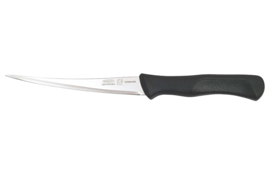 Kvalitní kuchyňský nůž vhodný na zpracování ryb. Takový musí mít doma každý rybář nebo milovník ryb. Díky tenké a velmi ostré čepeli je vhodný k snadnému oddělení masa od kůže. Čepel je z kvalitní nerezové oceli 420, má tvrdost 53-55 HRc, má kónický výbrus. Střenka je z odolného plastu. Díky kvalitnímu zpracování je nůž vhodný na každodenní používání. Je odolný korozi.