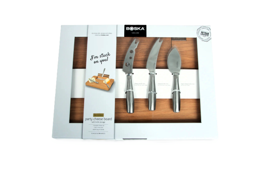Jakmile s těmito nerezovými noži skončíte, vložte je do myčky k čištění. Prosím, nedělejte totéž s dubovou deskou; je třeba jej umýt ručně v misce s trochou teplé vody a saponátu. Poté desku rychle otřete do sucha utěrkou a nechte ji uschnout ve svislé poloze. Také se ujistěte, že vaše servírovací prkénko neabsorbuje žádné pachy nebo skvrny tím, že ho každý měsíc postříkáte olejem Boska Board Oil. Postupujte podle těchto tipů a budete si moci tuto sadu užívat k vychutnávání lahodných svačin po mnoho let.
